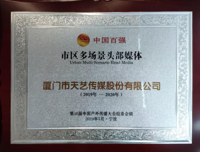 廈門市天藝傳媒股份有限公司創(chuàng)立于1993年,業(yè)務(wù)范圍覆蓋品牌管理、創(chuàng)意策劃、整合營銷、媒體投放等傳播鏈條。公司發(fā)展26年,在戶外傳媒領(lǐng)域極具市場競爭優(yōu)勢,形成了城市路名牌、公交候車亭、站名牌、廈門國際郵輪中心媒體、廈門航空艙內(nèi)媒體、廈門機(jī)場手推車、網(wǎng)約車媒體等“海·陸·空”360°全媒體覆蓋。在此次會議中,廈門市天藝傳媒股份有限公司有幸榮獲《中國百強(qiáng)市區(qū)多場景頭部媒體》的獎項(xiàng)。