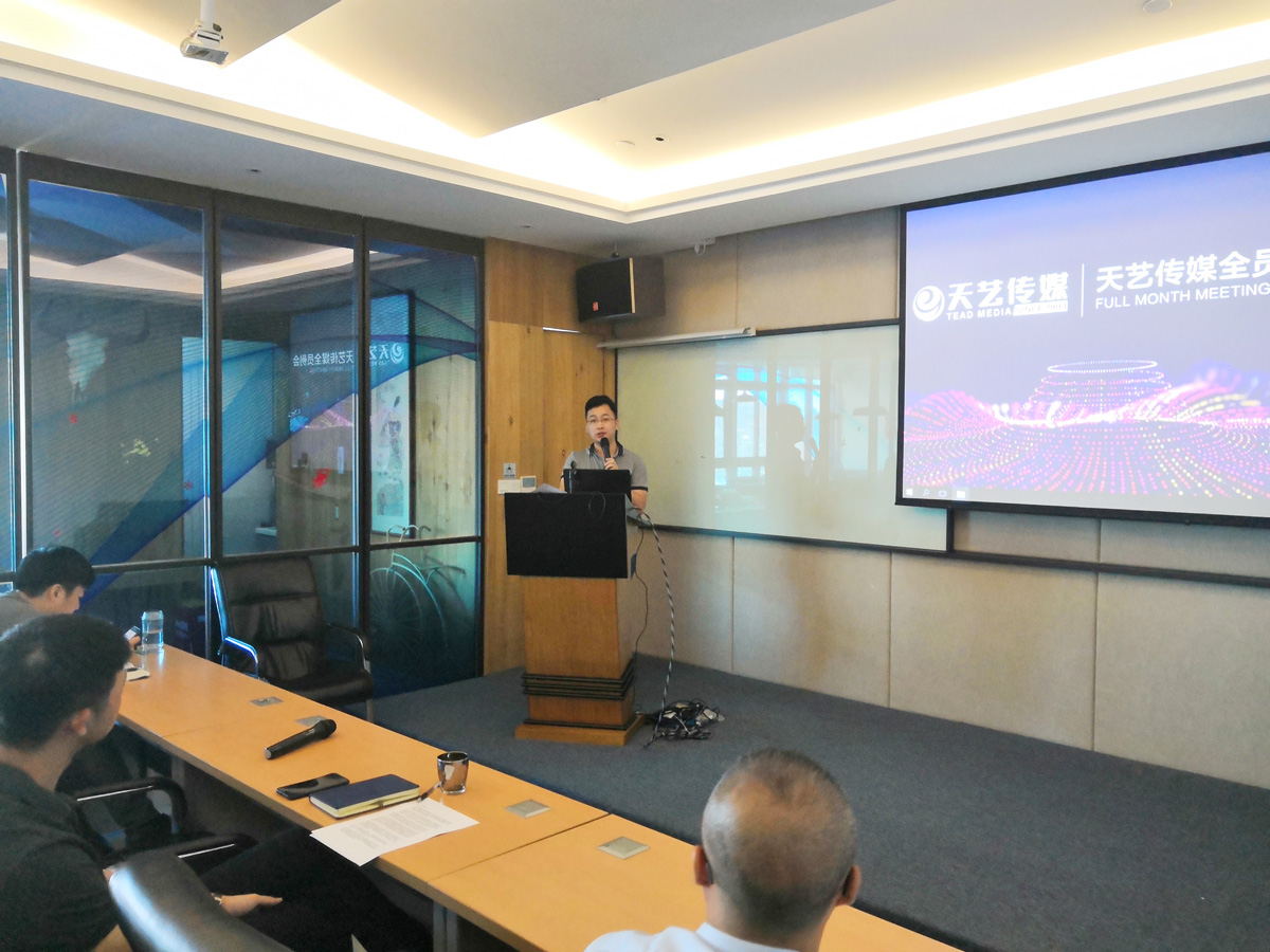 林一城總經(jīng)理在會議中總結(jié)了在過去的半年里天藝傳媒所取得的成績,肯定了公司所有員工的辛勤努力與付出,并感恩為天藝傳媒這半年來每一步的發(fā)展默默奉獻(xiàn)的每一位同仁。
