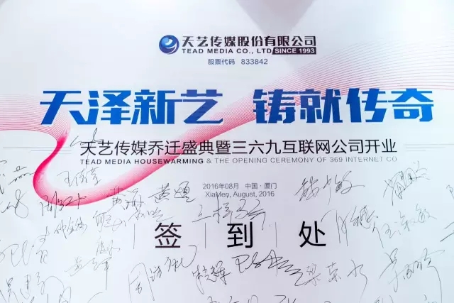 [2016年8月6日,悅享中心]天藝傳媒誠邀各方合作伙伴及各大媒體,共同慶祝喬遷之喜暨三六九網(wǎng)絡(luò)公司開業(yè)儀式。