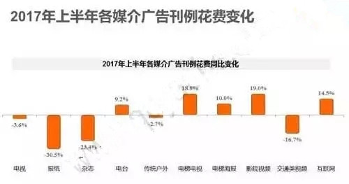 戶外媒體與“場景”和“場所”的連接成為決定其價(jià)值的重要因素。根據(jù)CTR媒介智訊《2017年上半年各媒介廣告刊例花費(fèi)變化》顯示,影院視頻、電梯海報(bào)、電梯電視成為了三種增長最快的媒介形態(tài),而報(bào)紙、雜志和交通類視頻則是三種降幅最大的媒介形態(tài)。