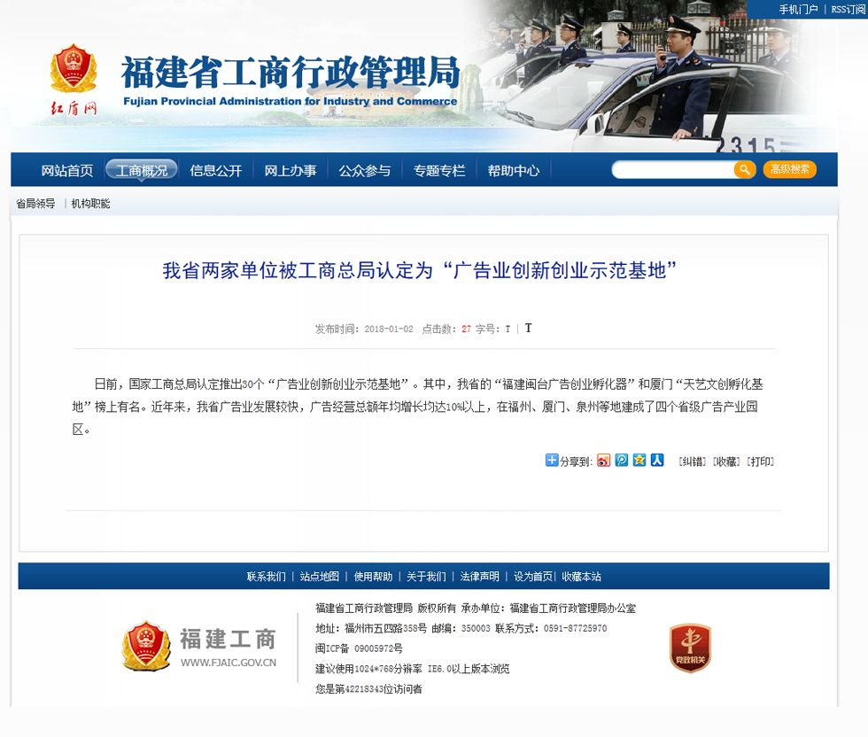 日前,國(guó)家工商總局認(rèn)定推出30個(gè)“廣告業(yè)創(chuàng)新創(chuàng)業(yè)示范基地”。其中,我省的“福建閩臺(tái)廣告創(chuàng)業(yè)孵化器”和廈門(mén)“天藝文創(chuàng)孵化基地”榜上有名。近年來(lái),我省廣告業(yè)發(fā)展較快,廣告經(jīng)營(yíng)總額年均增長(zhǎng)均達(dá)10%以上,在福州、廈門(mén)、泉州等地建成了四個(gè)省級(jí)廣告產(chǎn)業(yè)園區(qū)。
